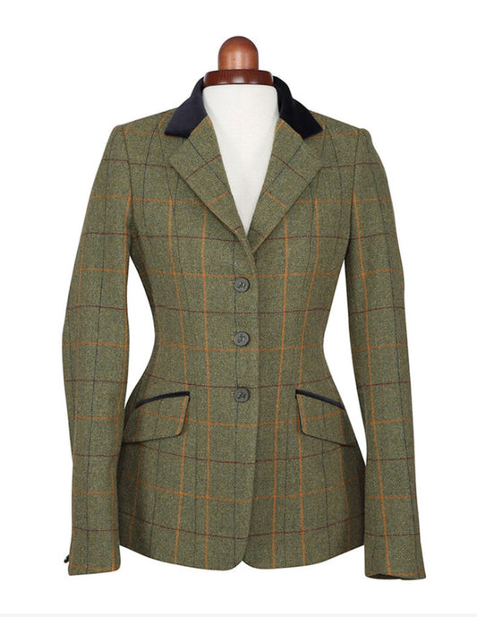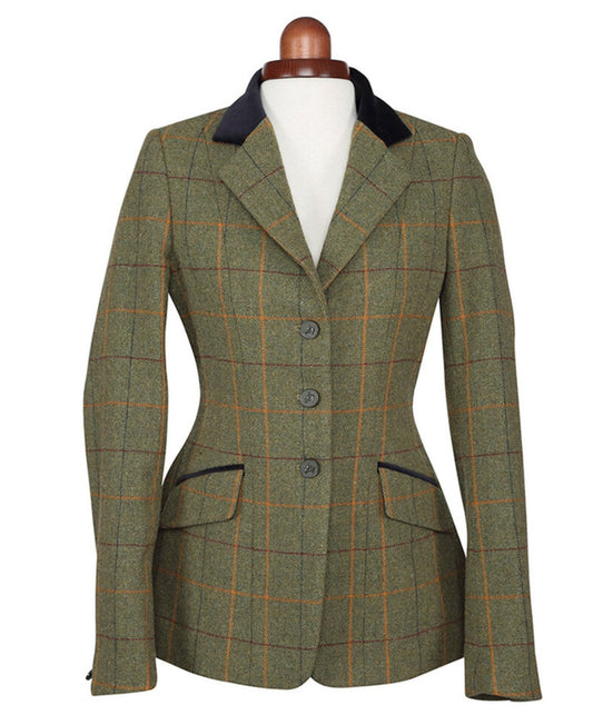 Aubrion Ladies Saratoga Hacking Jacket in green with a red, yellow, blue check.