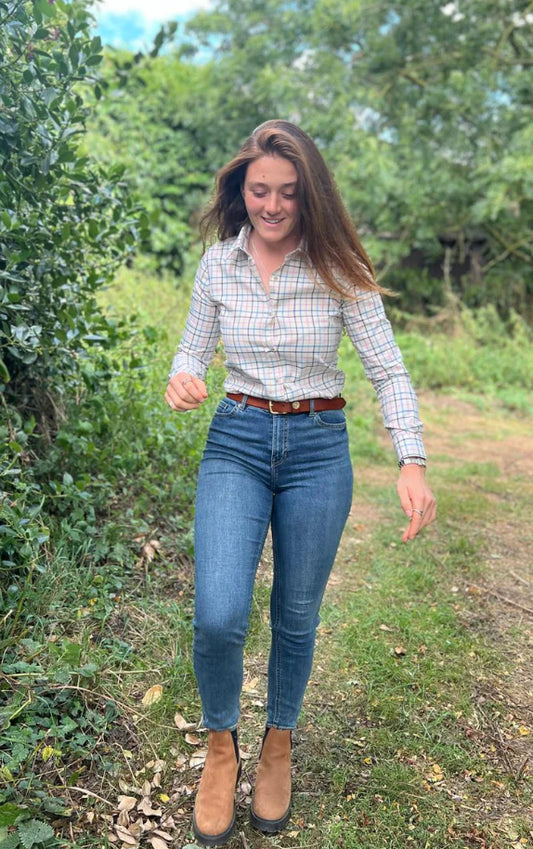 Aubrion Saratoga ladies tweed hacking jacket in copper check.