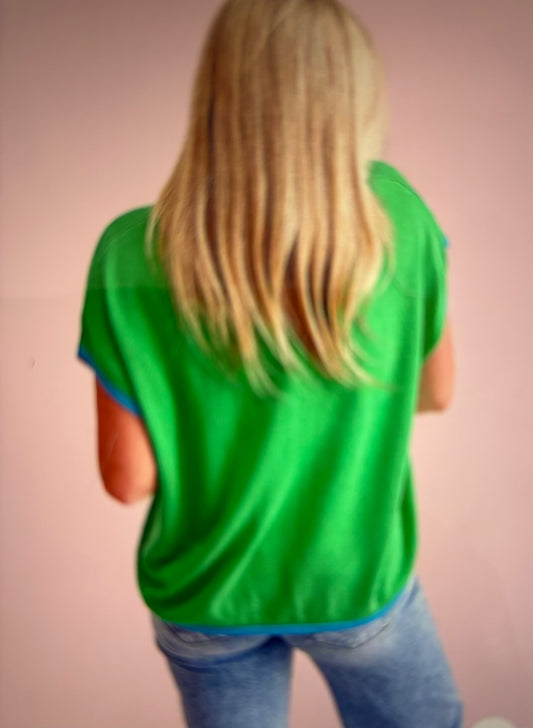 Contrast Trim Round Neck Short Sleeve Loose Knit Sweater