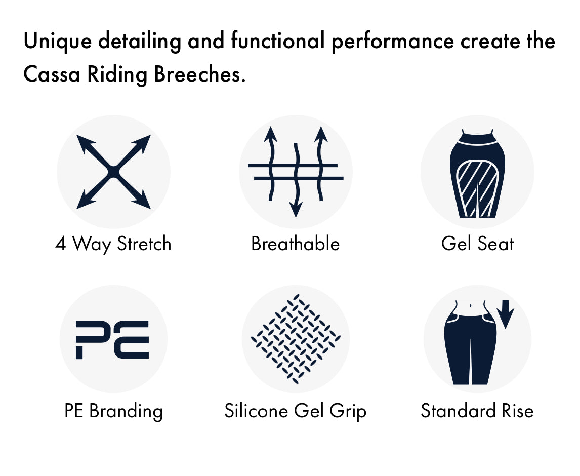 Designed to endure the day-to-day activities of the modern equestrian, the Cassa ladies breeches provide lasting comfort with an elegant, yet casual appearance.