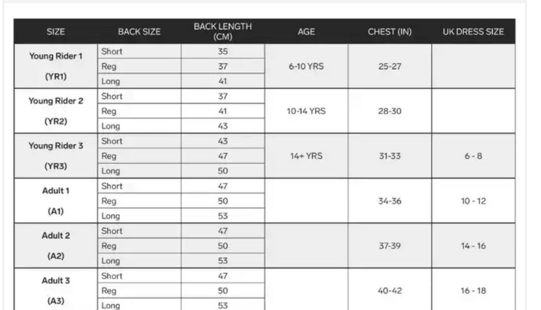 ✓ Limited protection area and not an alternative to a body protector